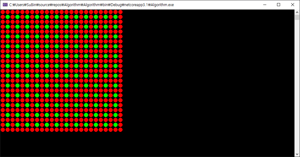 여기서 초록색은 갈 수 있는 부분 빨간색은 벽을 말합니다.