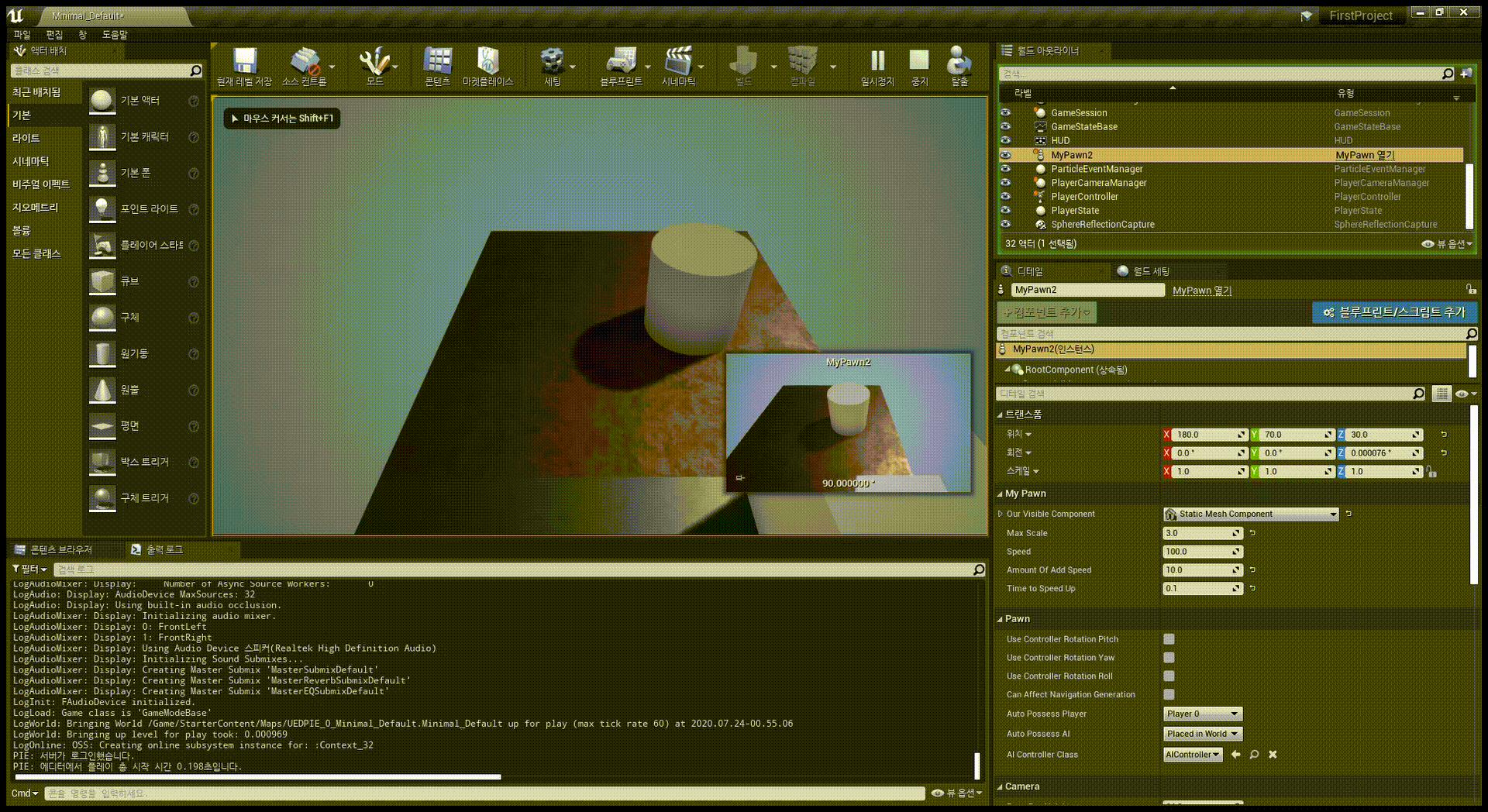 플레이어 입력 및 폰 튜토리얼에서는 플레이어의 입력에 따라 Pawn이 움직일 수 있게 만든다.